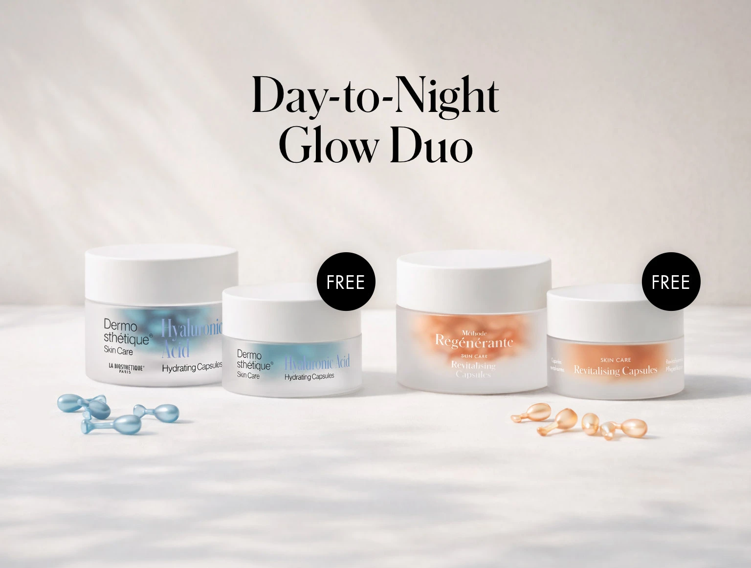 Two powerhouse capsule treatments—one for deep hydration, one for revitalising radiance—now paired with FREE minis so you can glow at home and on the go.